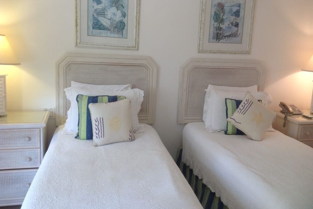 Privacy is a key attraction in this villa. On the first floor, tastefully furnishings complement the serenity of the two sun-filled guest bedrooms, each with en suite marble bathrooms.