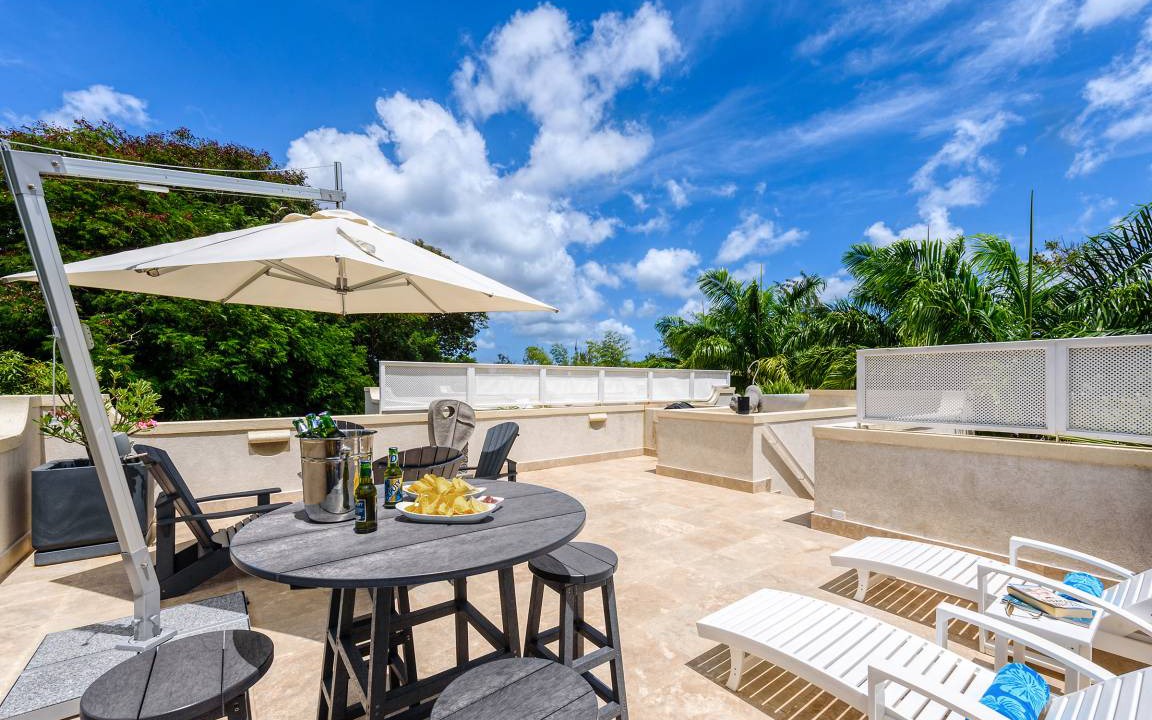The roof deck is perfect for relaxing under the umbrella, sun bathing, alfresco dining or grilling on the Bbq.