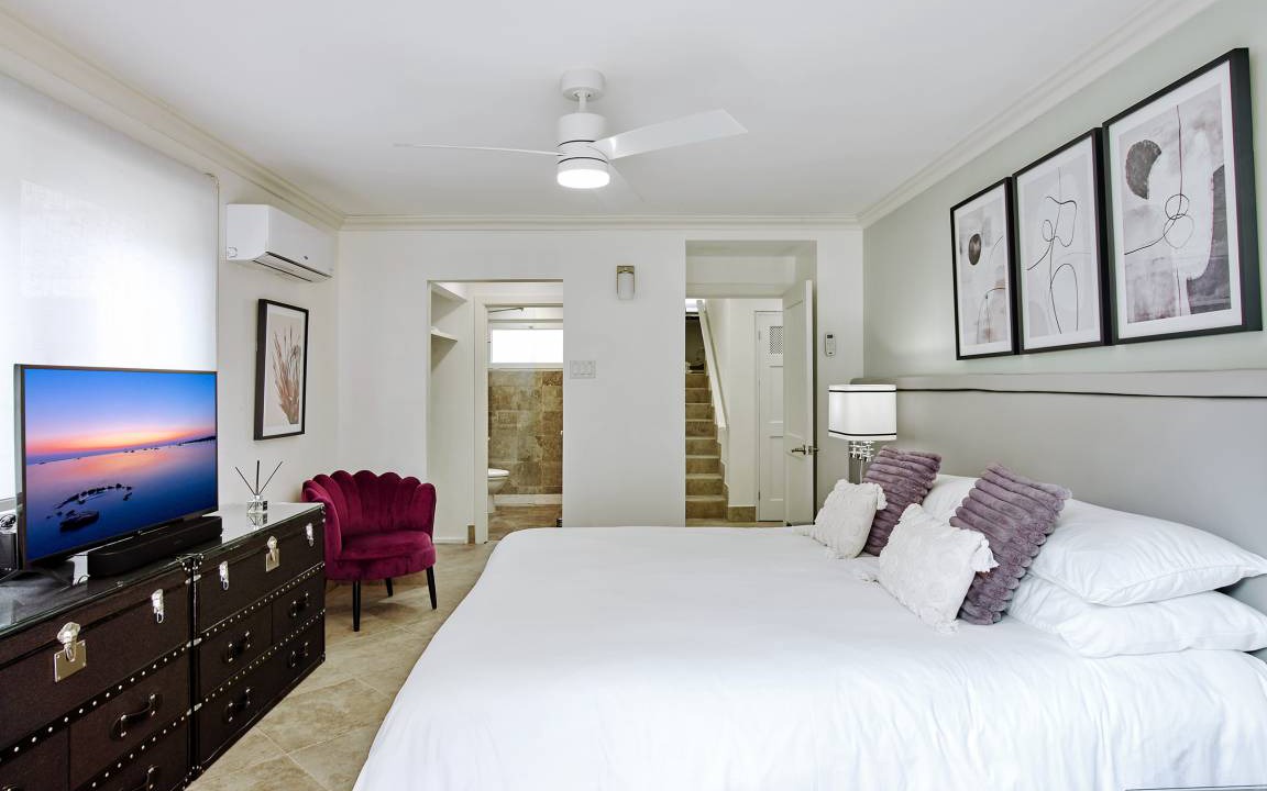 ZenBreak KingsGate #1 is a modern multi level 2 bedroom Townhouse with shared pool and a 3 minutes walk to Gibbs Beach.