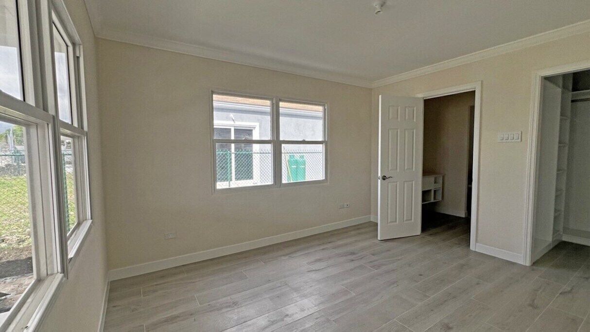 This new, contemporary residence seamlessly blends modern design with comfort, offering an open-plan living concept that effortlessly extends to a covered terrace at the rear of the property. The heart of this home is its sleek kitchen, equipped with a refrigerator and stove, complemented by a convenient ensuite laundry nook featuring a washer/dryer combo and sink. The main bedroom is a retreat of its own, featuring an ensuite bathroom and a generously sized walk-in closet. All bedrooms are air-conditioned. Positioned along the bustling Highway 7, This villa provides easy access to the Grantley Adams International Airport, making travel a breeze. The residence is situated in the vibrant community of the Villages at Coverley, offering residents a lifestyle of convenience with proximity to essential amenities including banking, shopping, groceries, fitness centre, medical, and a petrol station.