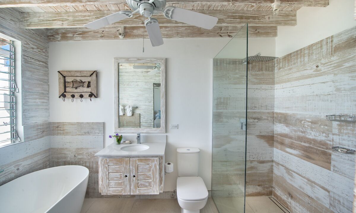 The Bay is well known for water sports, snorkelling, and the occasional visiting sea turtle. The master bedroom is en suite with a king bed and the second bedroom has a double-size bed. All bedrooms have air-conditioning and ceiling fans.