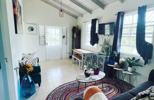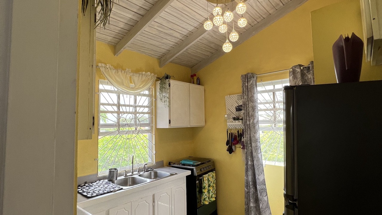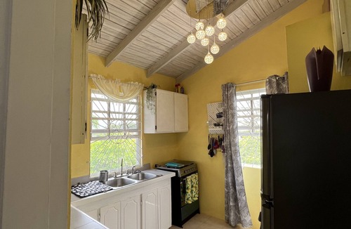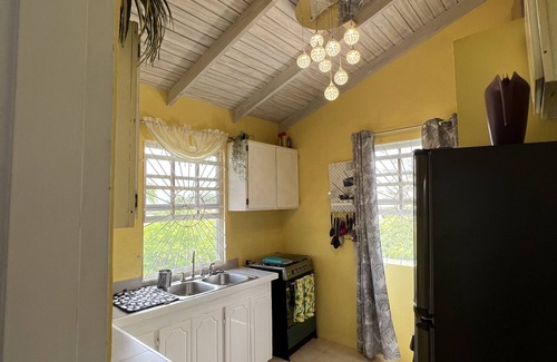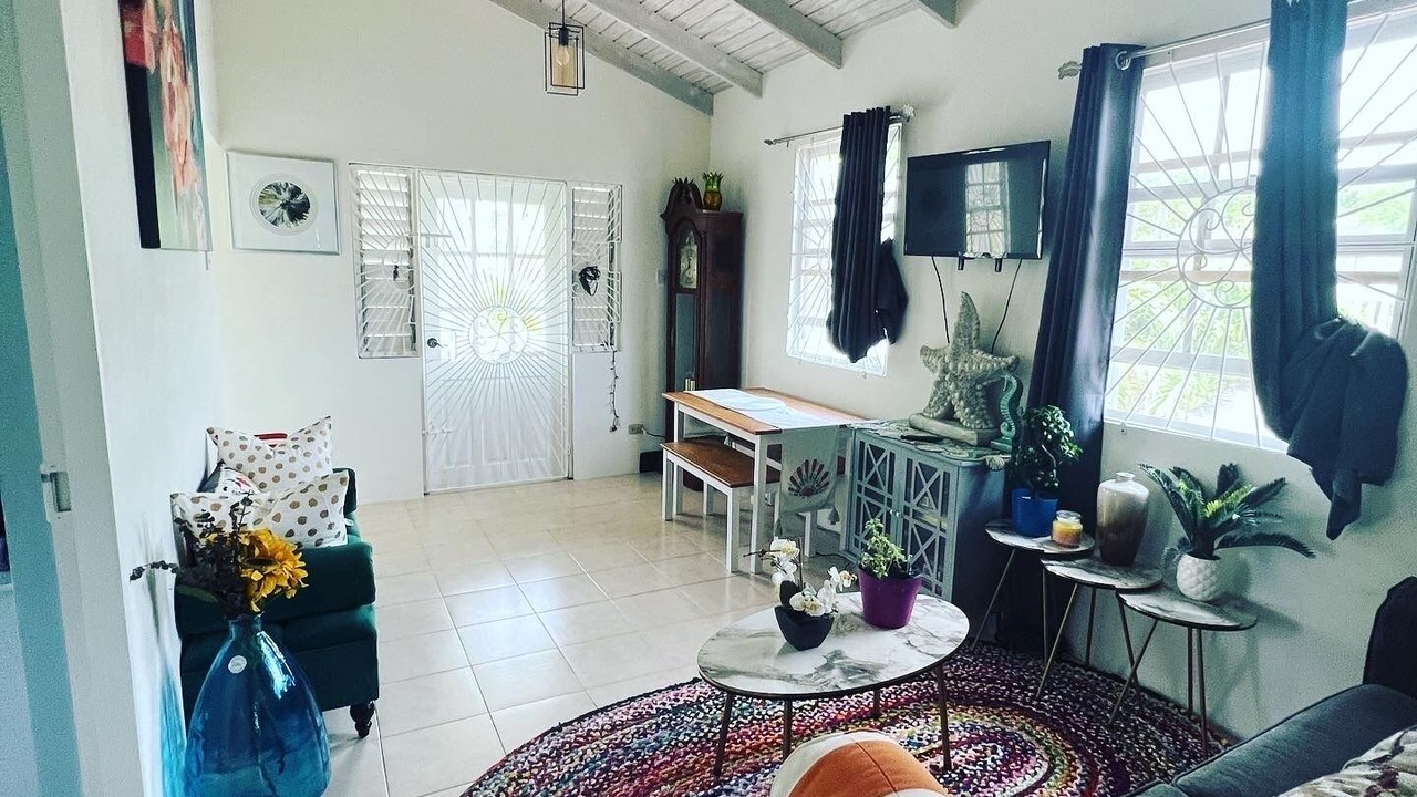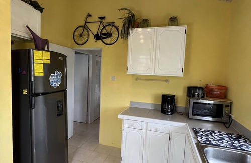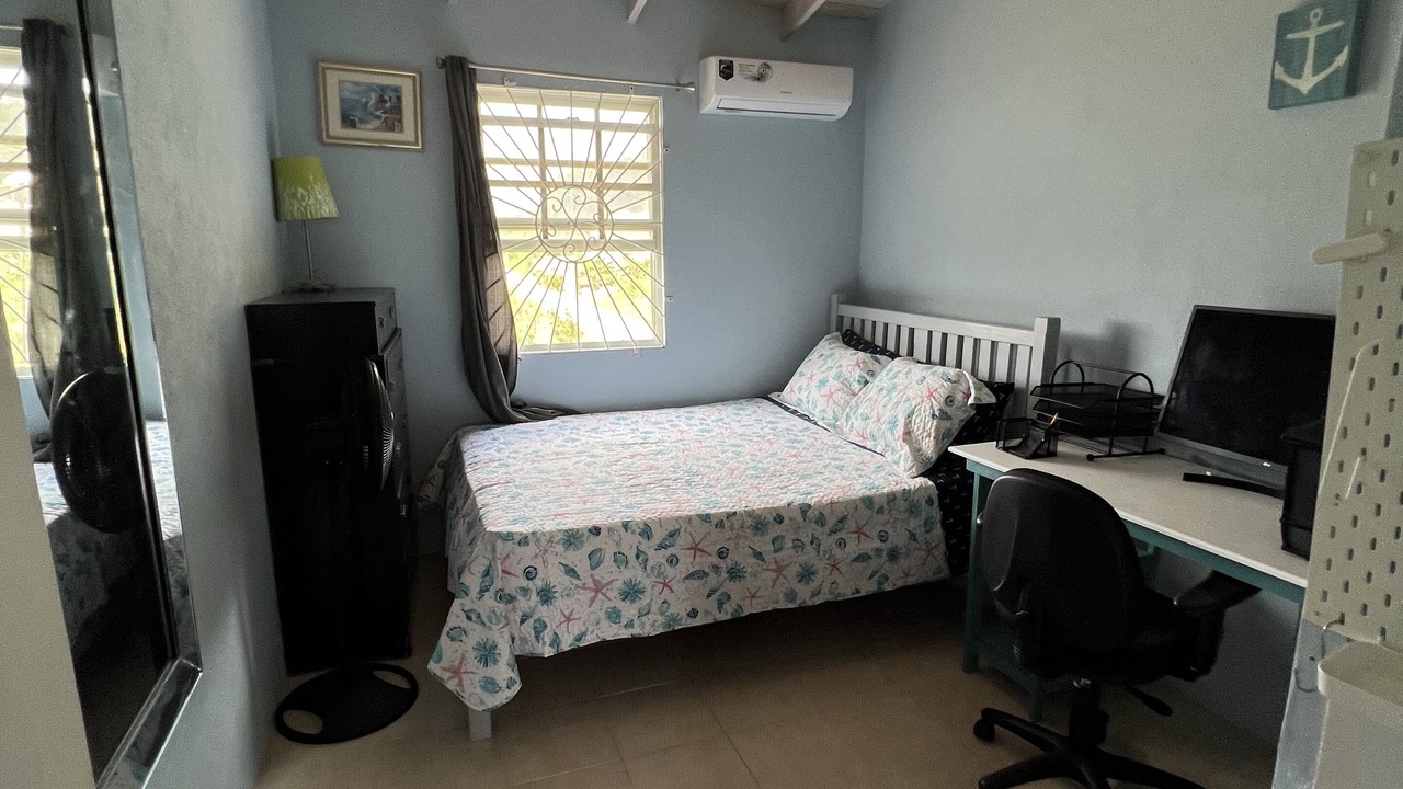 This is a lovely 2 bed/2bath upper unit with veranda located a short walk to the beach and historic speightown. Sleeps 6 with sofa bedin the living room. The bedrooms have AC, queen size beds and window screens. Wifi, cable provided with tv in the living room and main bedroom. Fully equipt kitchen. Suitable for longer term or short term stays. Breezy and tranquil yet close to night life. Transit, banking and grocery shopping a short walk. New deck above the carport is a huge bonus!!! Queen size sofa bed allows for six to sleep. We provide a towel and beach towel per guest.