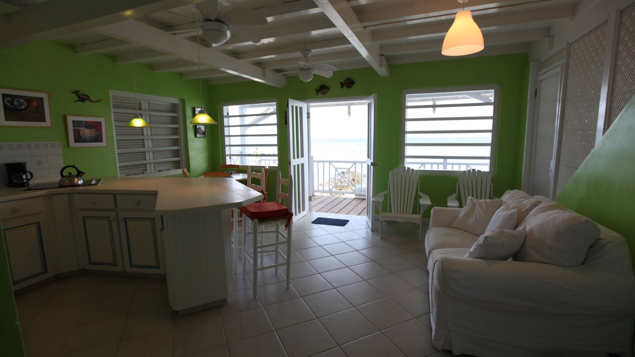 It’s not possible to get any closer to gorgeous white sand beach or the ocean on the island. Relax on the patio, watch the spectacular sunsets, sip a drink and look down at the ocean literally at your feet.
