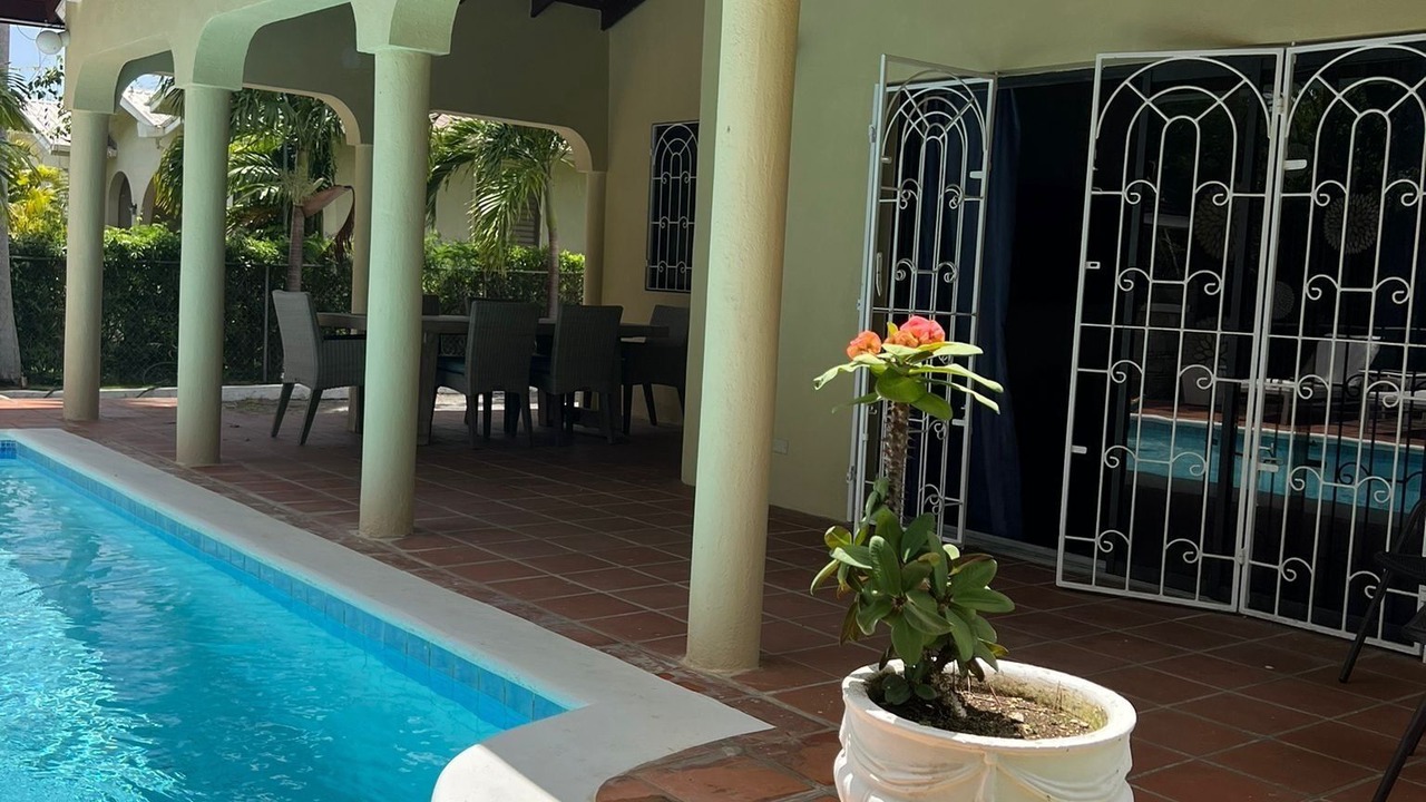 Located on the platinum west coast of Barbados. A private, spacious, tastefully decorated home away from home. Set on stunning gardens, with a full sized private pool and beautifully furnished patio and deck with outdoor dining. The house also boasts a full kitchen, dining area, a cozy living room, study and a washer and dryer. There is a private entrance with an automatic gate, driveway and a garage.