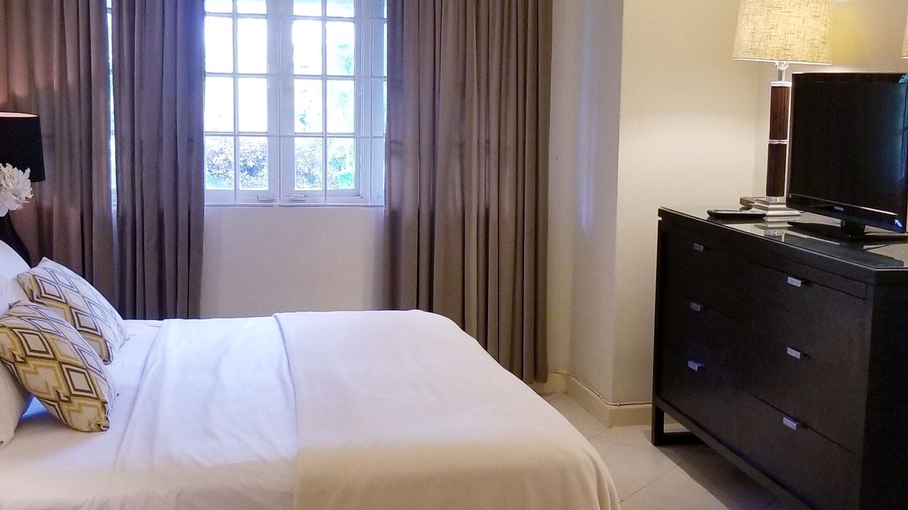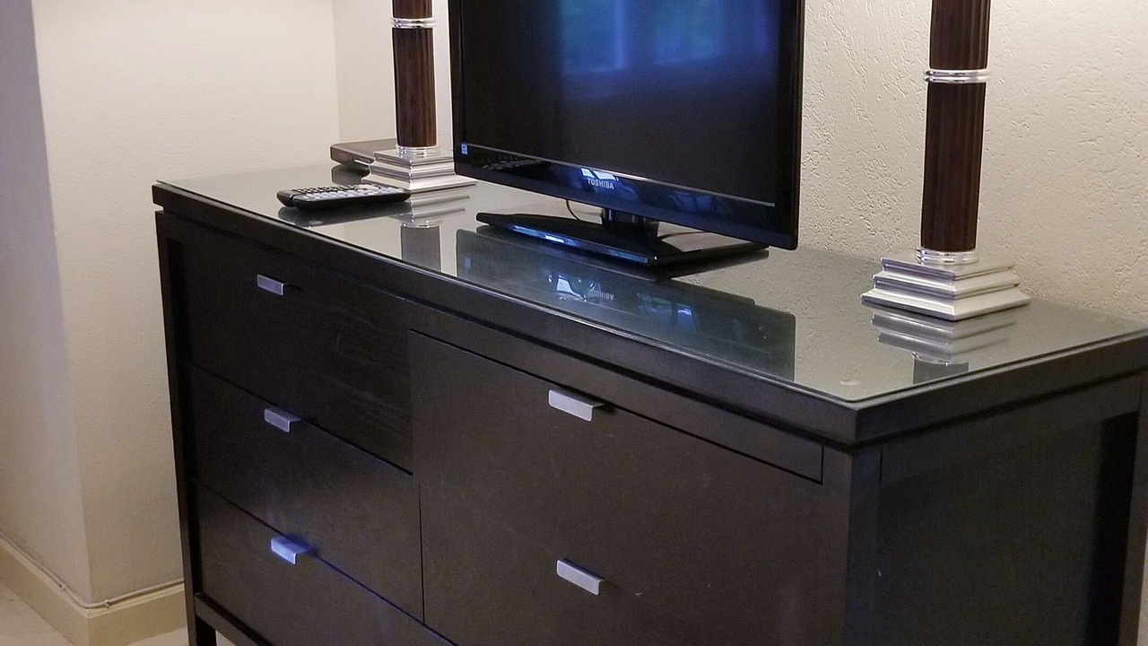 • The master bedroom has an en suite bath with marble countertop, a 32” LED TV with cable TV service, a Blu-ray player and offers large closets with a dresser.