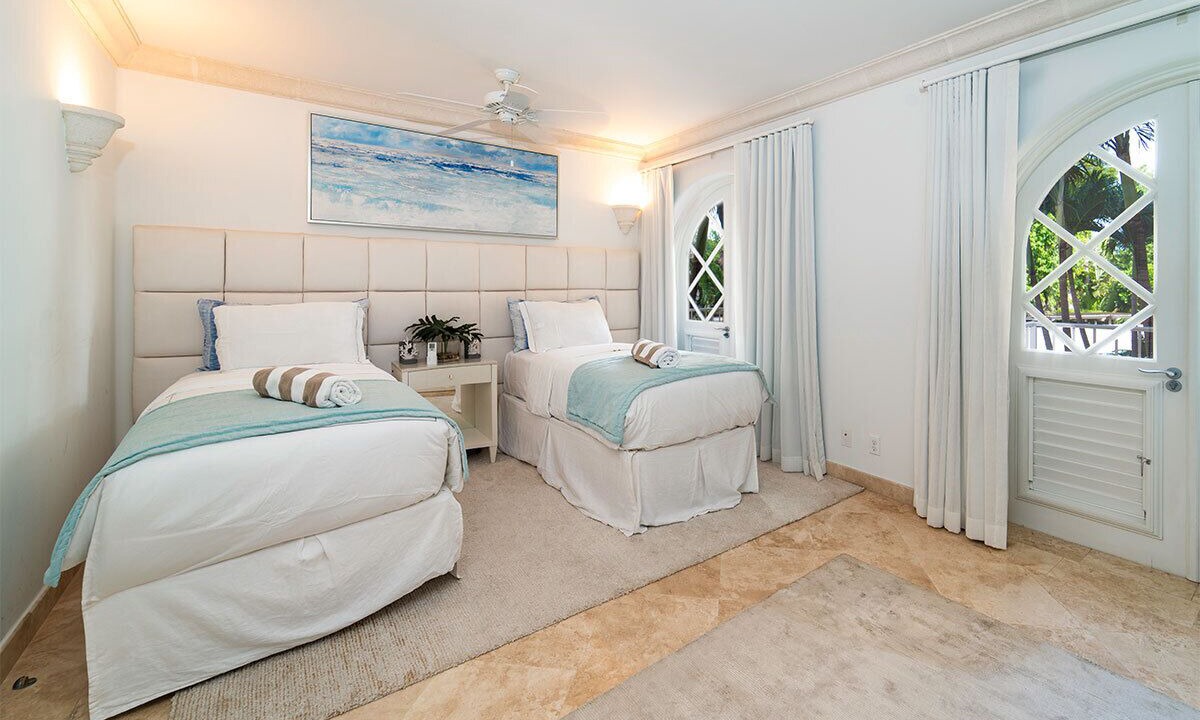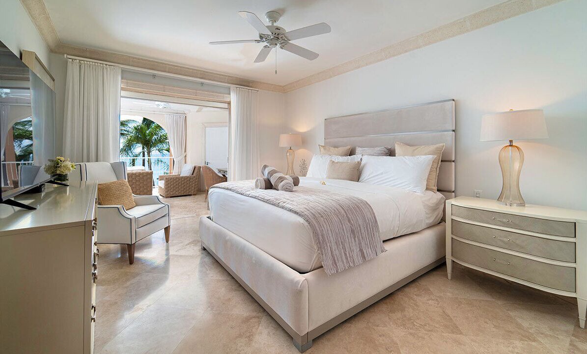 St Peter's Bay 211 is a luxurious three-bedroom condo located on the West Coast of Barbados with stunning views of the Caribbean Sea. The primary bedroom offers a comfortable king-sized bed and a breathtaking sea view. The second bedroom boasts a queen-size bed and a private terrace, while the third bedroom offers two single beds that can be converted into a king-size bed, also featuring its private terrace. Each bedroom has its own ensuite bathroom with a relaxing tub. The third bedroom also features a pull-out couch that may be used for an additional child.