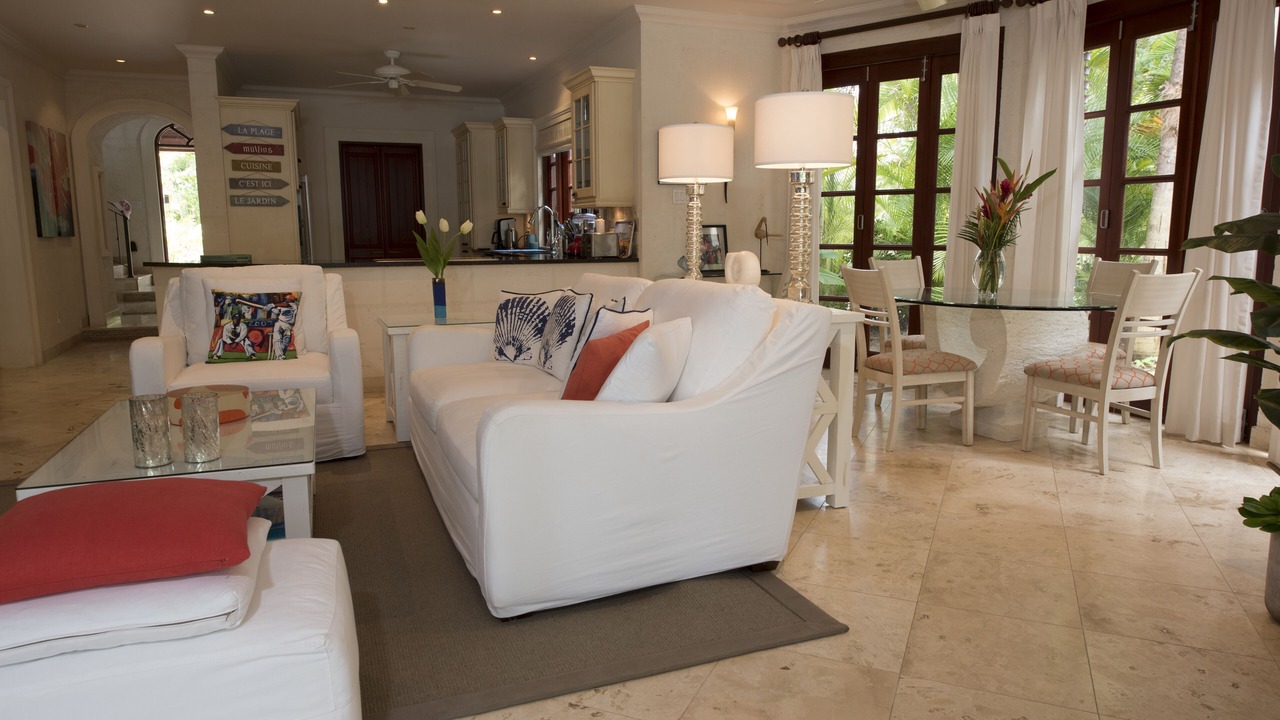 Claridges 3 is a beautifully furnished, 3,000 sq ft, coral stone semi-detached villa consisting of 3 spacious double bedrooms, each with a large en-suite and walk through wardrobe. Marble, travertine and granite finishes give the villa a luxurious and stylish feel throughout. The main entrance leads to an open plan living/kitchen/dining area which itself opens on to a covered terrace and tropical gardens where guests can enjoy al fresco dining. A few steps further is a huge 220 ft communal swimming pool, with waterfalls, gazebo and a sunbed area where residents can soak up the brilliant year-round Barbados sunshine.